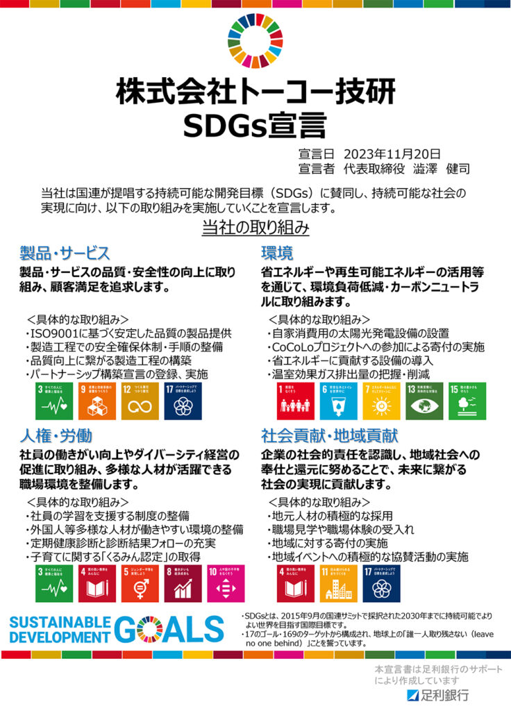 私たちトーコー技研の全社員は、顧客の要求事項を100%満足させるために、常に品質の向上、技術の向上を追求し、業界トップ水準の生産工場を目指しております。